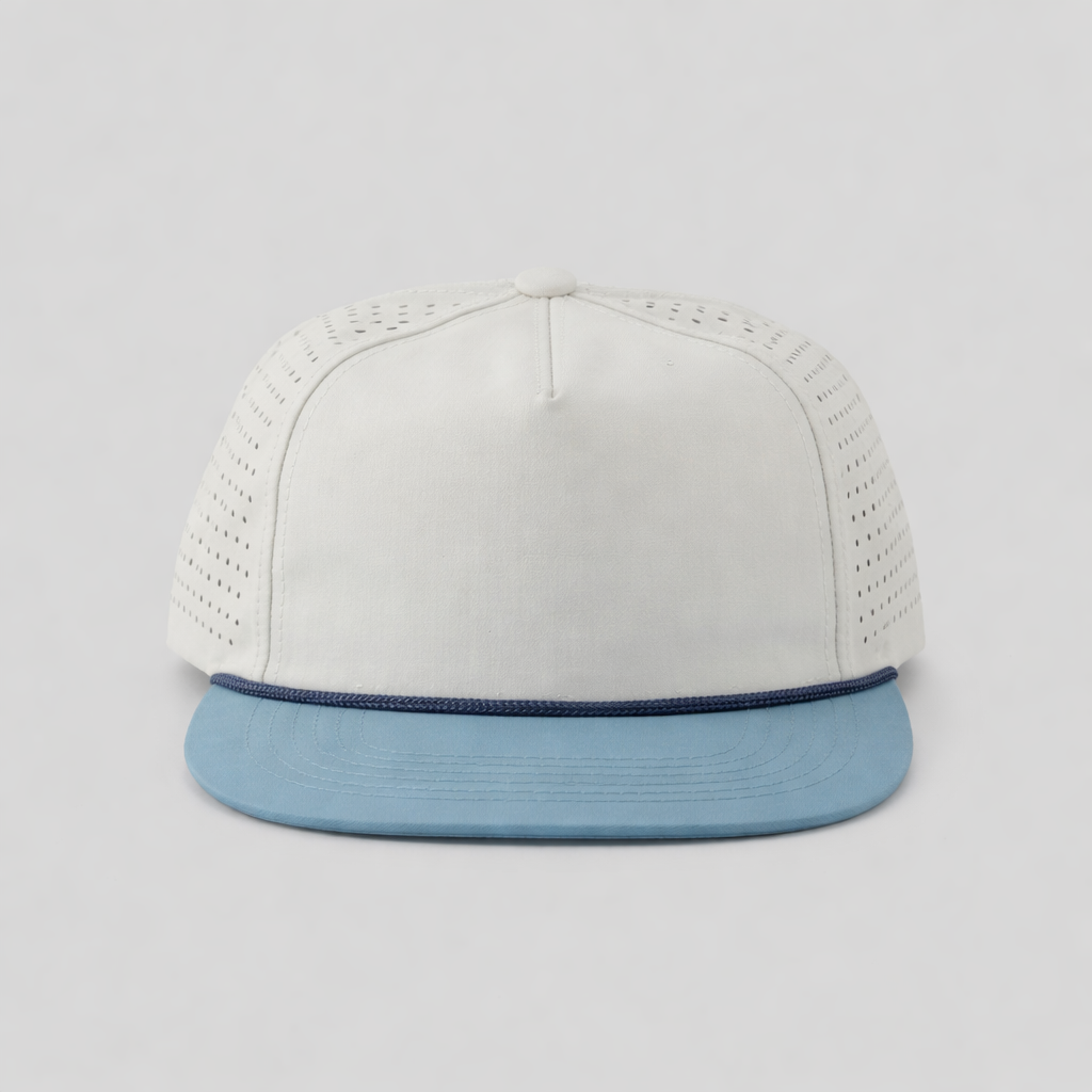 Introducing the hat that's so breezy, it practically tells dad jokes! With its two-tone design and more holes than your uncle's golf game excuses, this perforated rope hat is the ultimate accessory for keeping cool, both in style and temperature.......